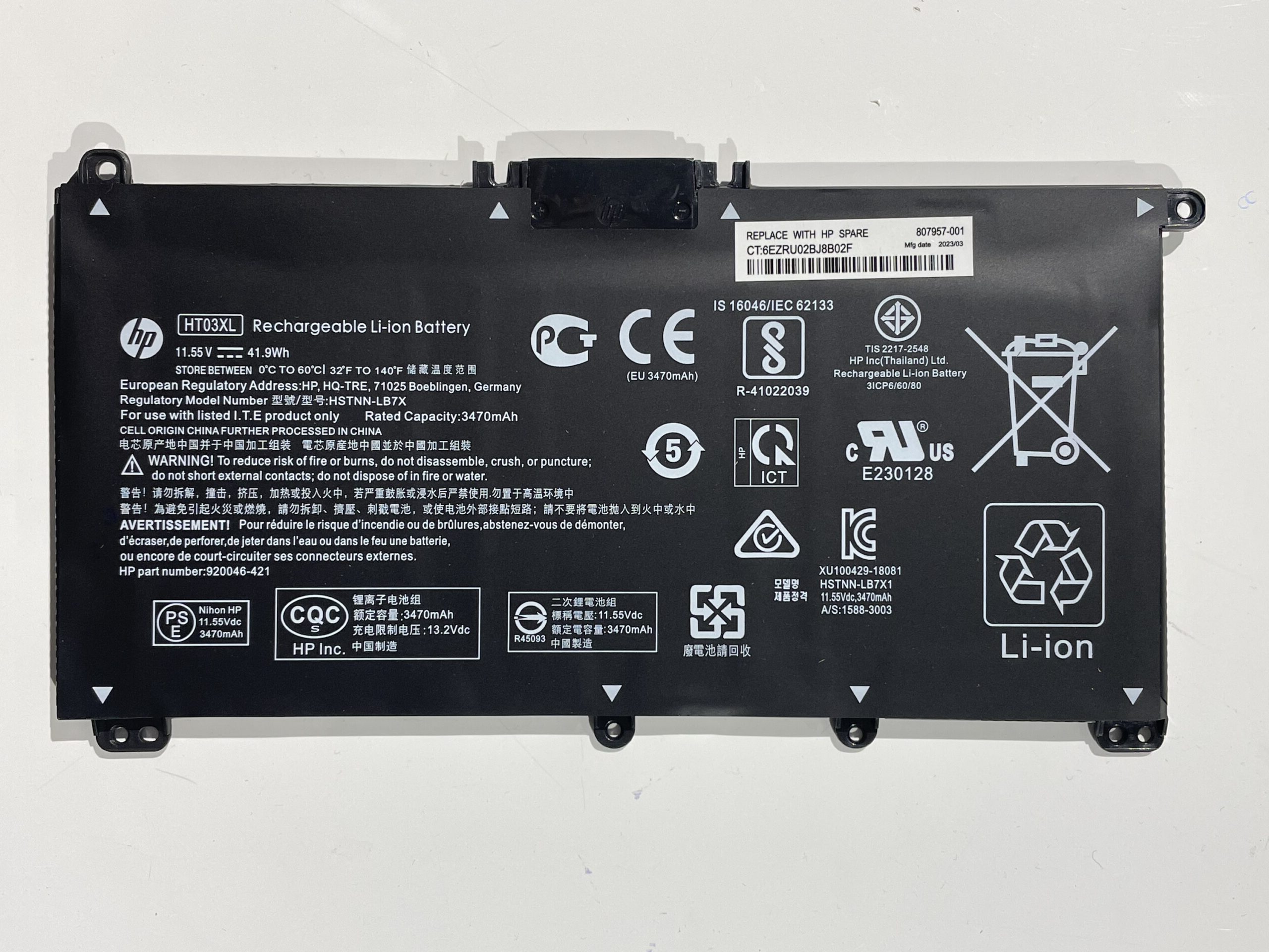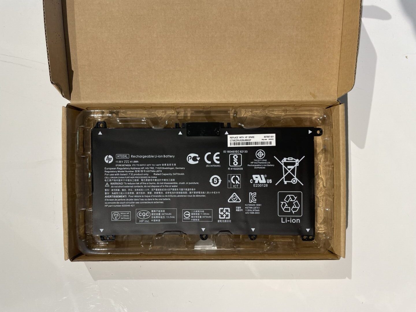 ორიგინალი გამოუყენებელი ბატარეა HP HT03XL-ისთვის