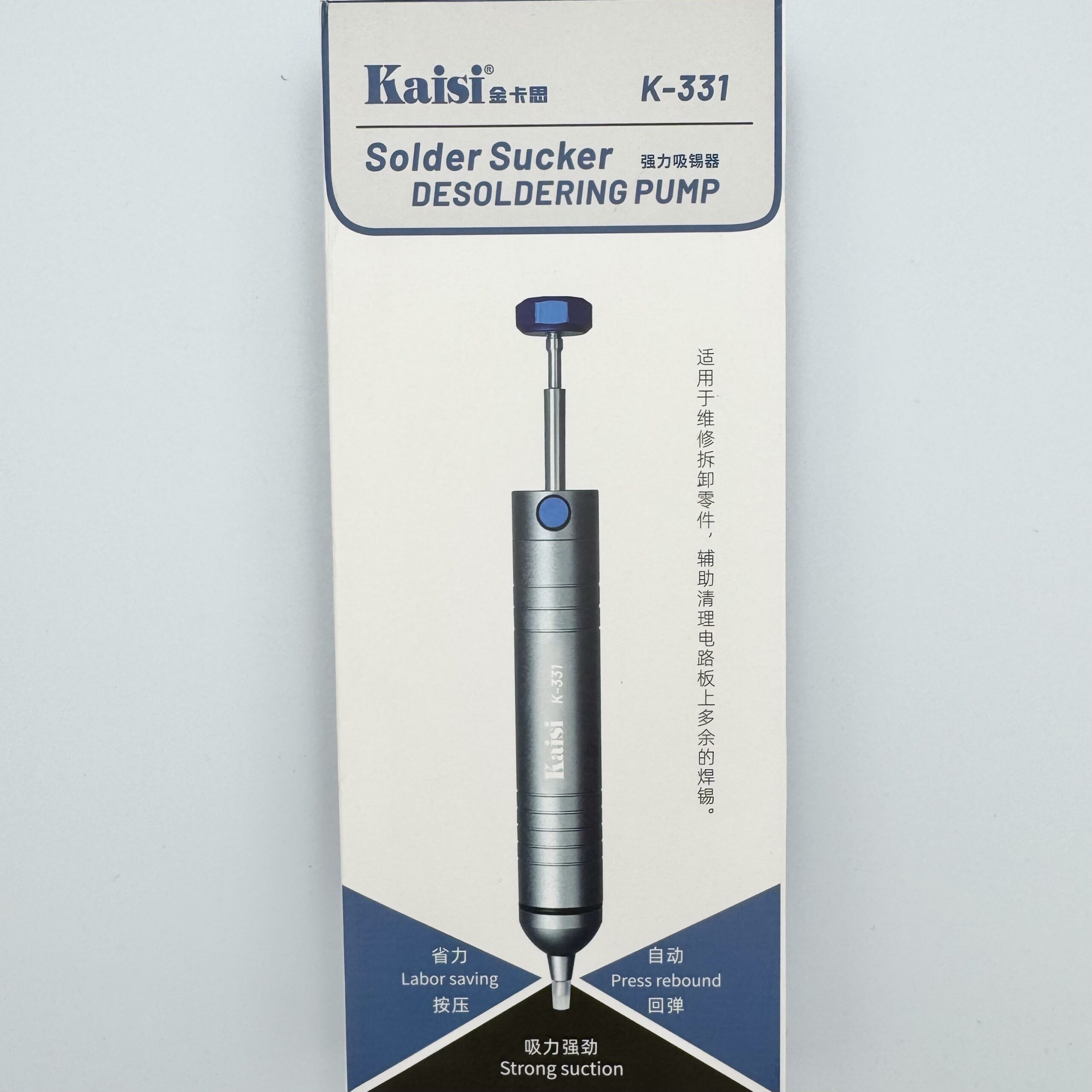 Качественый удобный оловоотсос KAISI со сменной силиконовой трубкой. Доступен в магазине в Тбилиси. Подойдет для сервиса и для любительского применения.